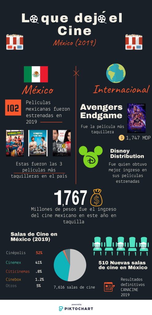 Ahora, la Cámara Nacional de la Industria Cinematográfica (Canacine) dio a conocer datos de la industria en México del 1 de enero al 31 de diciembre de 2019.